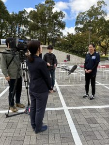 中野選手はテレビや新聞の取材を受けました。